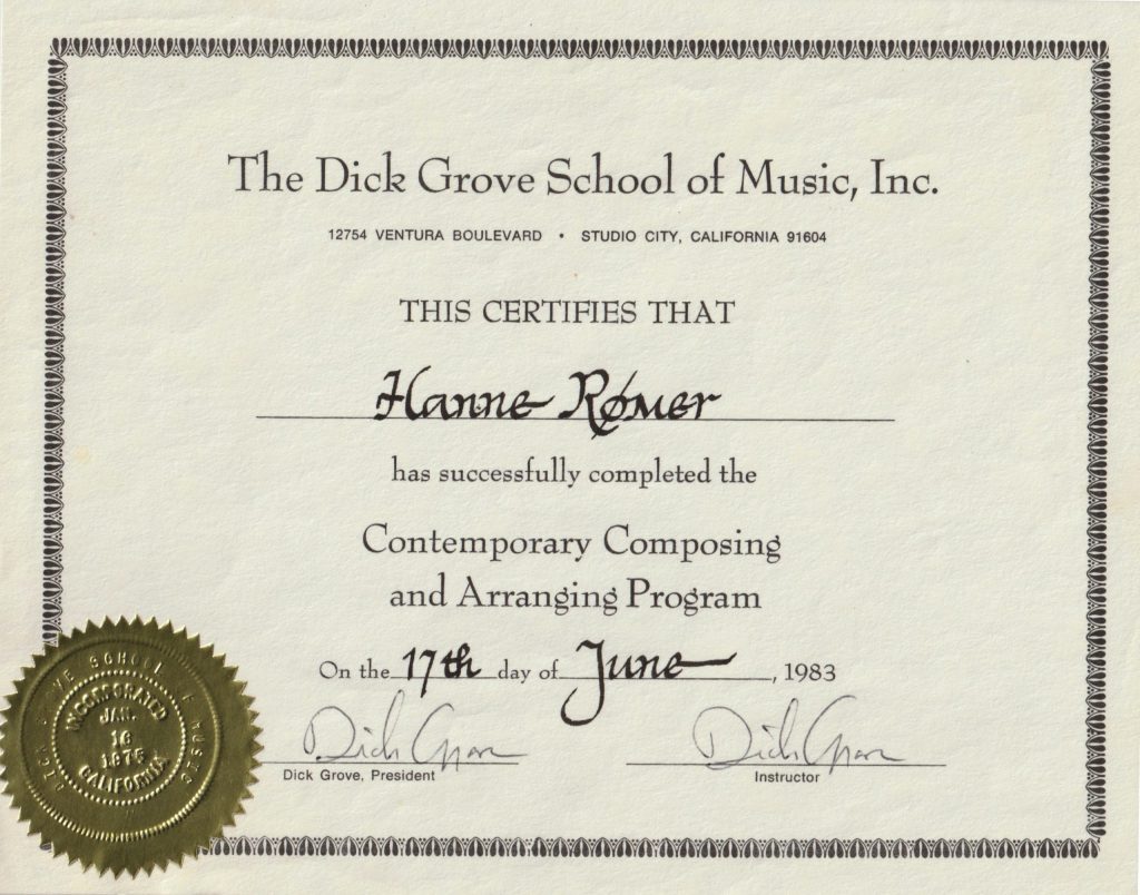Gennem 3 år boede jeg sammenlagt halvandet år i Los Angeles og gik på Dick Grove School of Music. Det blev min endelige udannelse.
